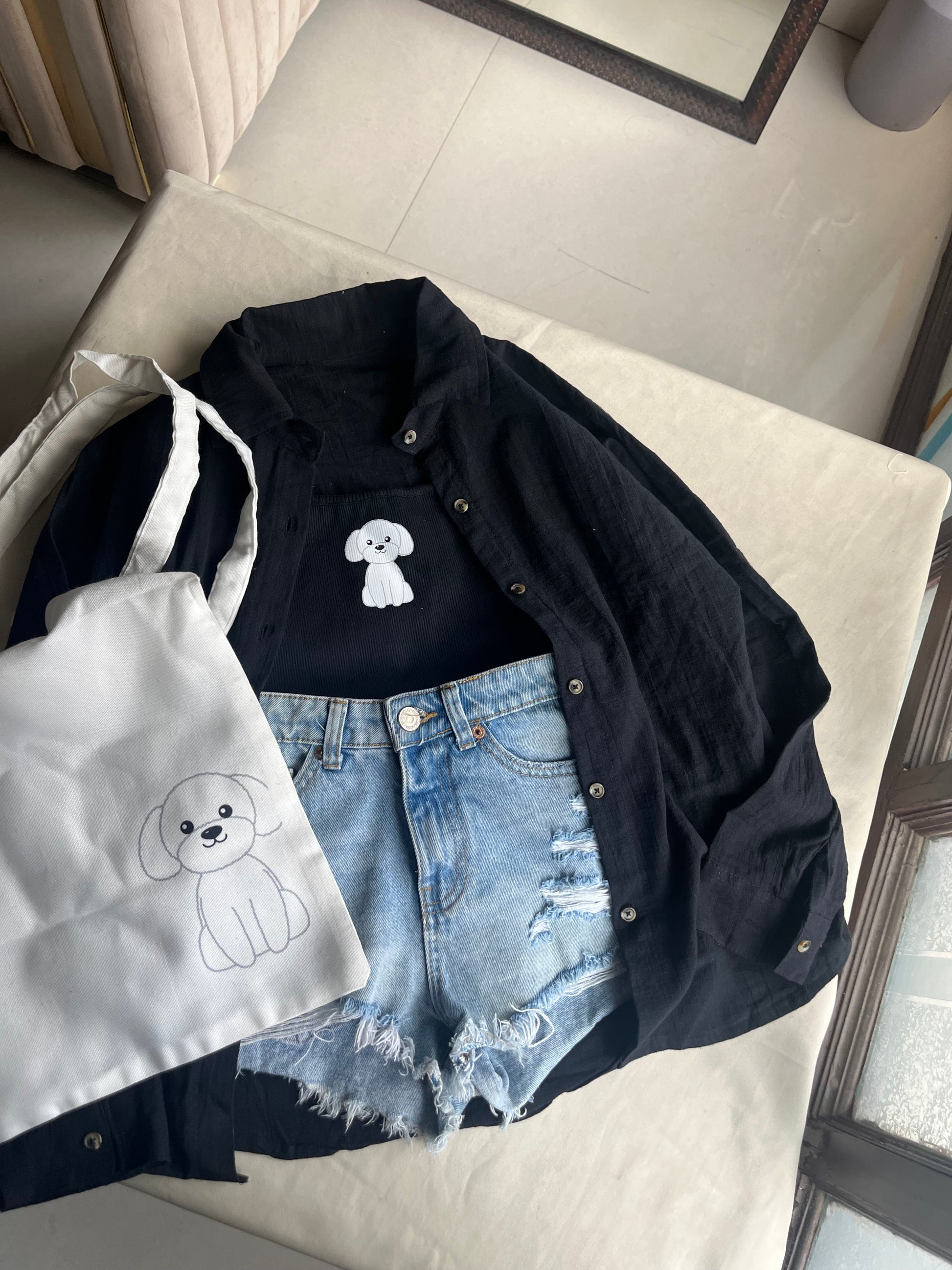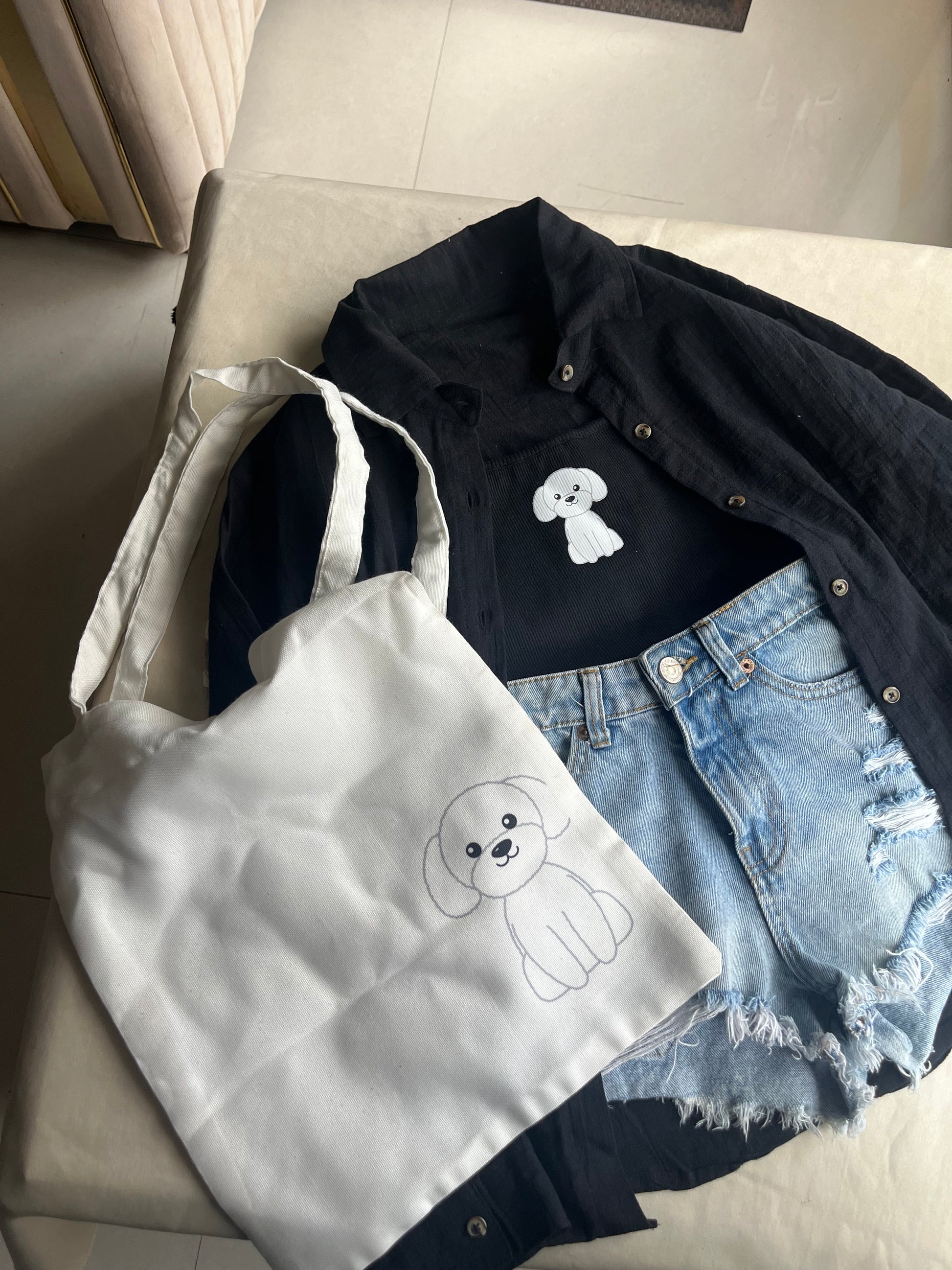 Shopper in canvas made from a cotton blend with a print motif on the front. Two handles at the top.