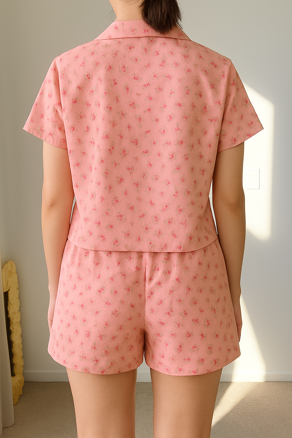 It includes a shirt and a matching printed bottom.