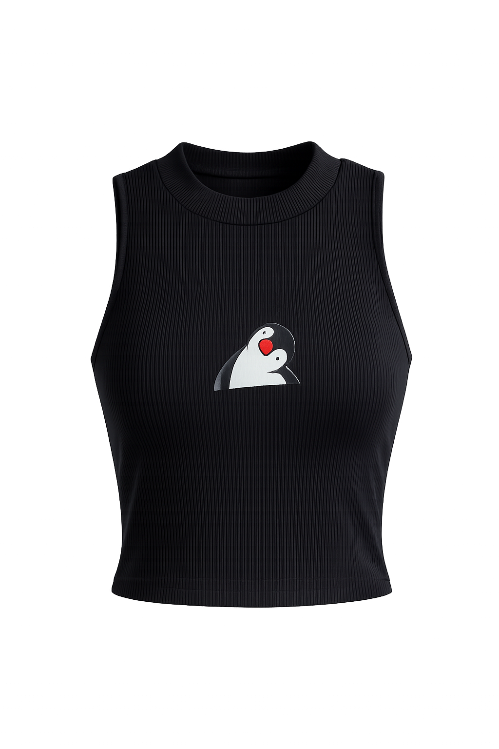 Fitted vest top in ribbed cotton jersey with a narrow trim around the neckline and armholes. Printing on the front and clean plain back.