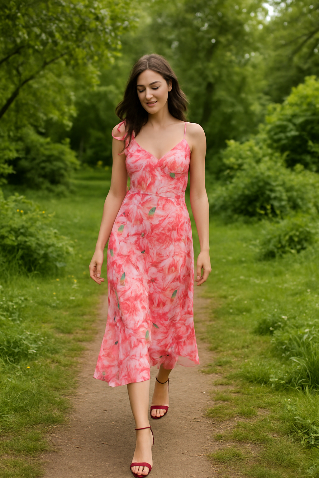 Step into sunshine with our Floral Ruffle Dress, a vibrant blend of tropical pinks, peaches, and soft greens that bring instant vacation vibes. Designed with a flattering V-neckline, playful shoulder ruffle, and a flowing silhouette, this dress is perfect for brunch dates, beach getaways, or summer parties.